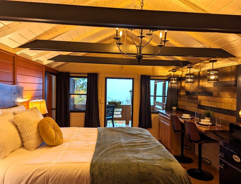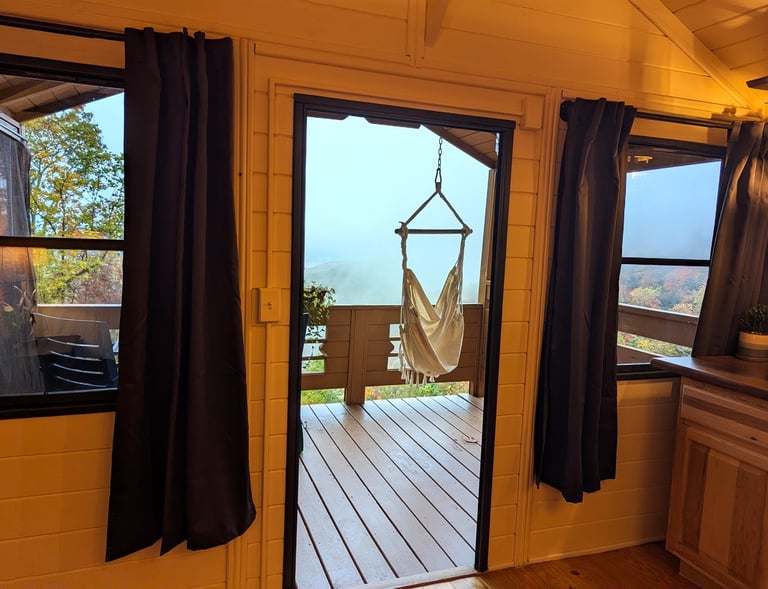 Your cozy one-bedroom cabin has everything you need for comfort and calm, with a private porch overlooking one of the best views in the region. Step out onto your private porch, suspended among the trees, and sink into the hammock swing as you take in sweeping, long-range mountain views sitting 4,000 feet above the sea. From this high-elevation perch, you’ll feel completely immersed in the forest canopy— Featuring a great diversity of birds (91 species recorded), we have the Audubon society’s distinction of Important Bird Area--“one of the most significant examples of high elevation forest and natural communities in the southern Appalachians.”